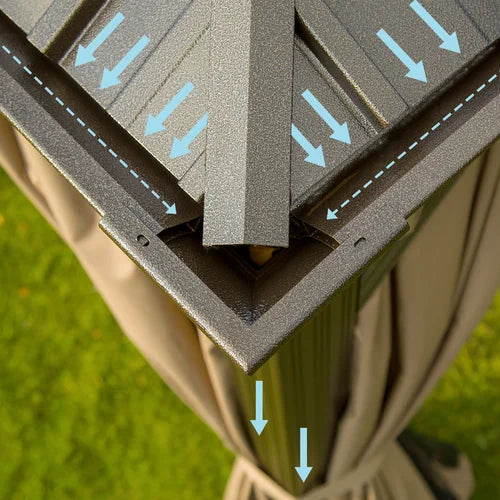 - Unique water gutter: this outdoor gazebo is designed with a water gutter that allows the rainwater to flow from the edge of the top into the hole, then to the ground. No worries about the rainy day and snow melting.