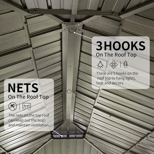 The 2-tier roof provides just the right amount of airflow while simultaneously keeping occasional inclement weather at bay. Equipped with hooks on the roof, it can be used for installing fan or light.