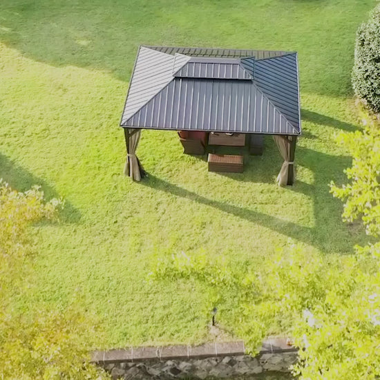 This hardtop gazebo is a gorgeous addition to any patio which expand your living space by bringing the indoors outside. This stylish set provides a relaxing area, perfect for family out door dinners and hosting get-togethers for you and your friends.