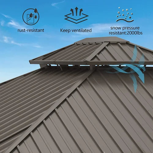 - Reinforced aluminum frame: Powder-coated aluminum gazebo frame. Patio canopy gazebo is sturdy, rustproof, anti-corrosion, and all weather-resistant for years of use. The stable structure can withstand heavy snow and wind.
