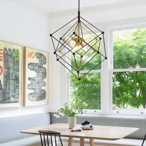 - Modern and Industrial Style Chandelier: Its bold, geometric design creates unique lighting by capturing light from six bulbs, coupled with its geometric square shape, making this chandelier a stand-out focal point in your living room, dining space, or entryway.