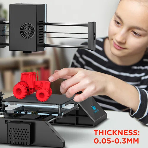 LABISTS mini 3D printer PRO with 120X120X115mm printing size, 1.75mm PLA filament and accuracy of 0.05mm offers smooth printing quality and convenient to carry and save space. Perfect DIY kit for beginners, kids, teens to DIY projects like toys, artworks, crafts or samples.