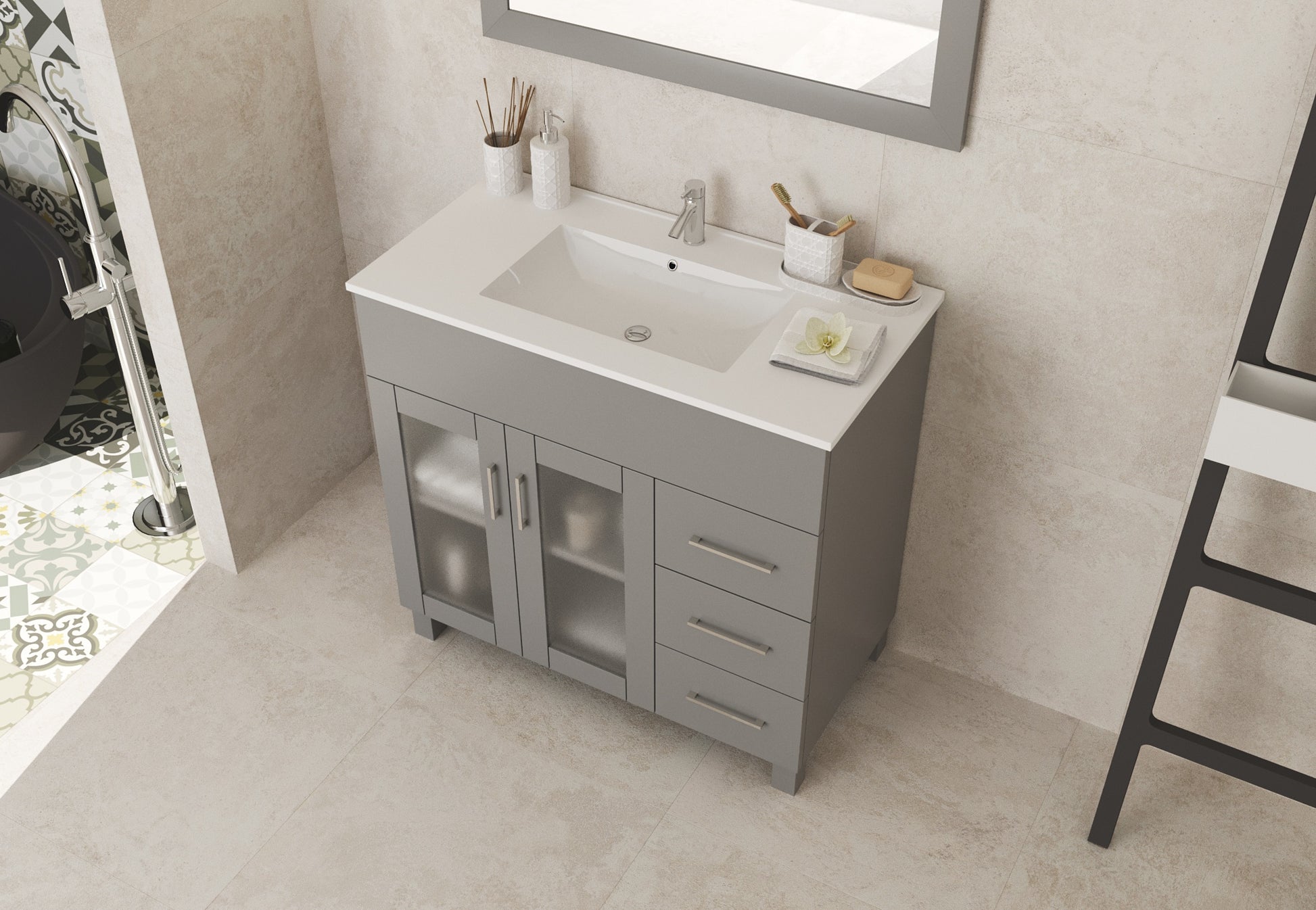 Laviva - Nova 36" Grey Bathroom Vanity with White Ceramic Basin Countertop